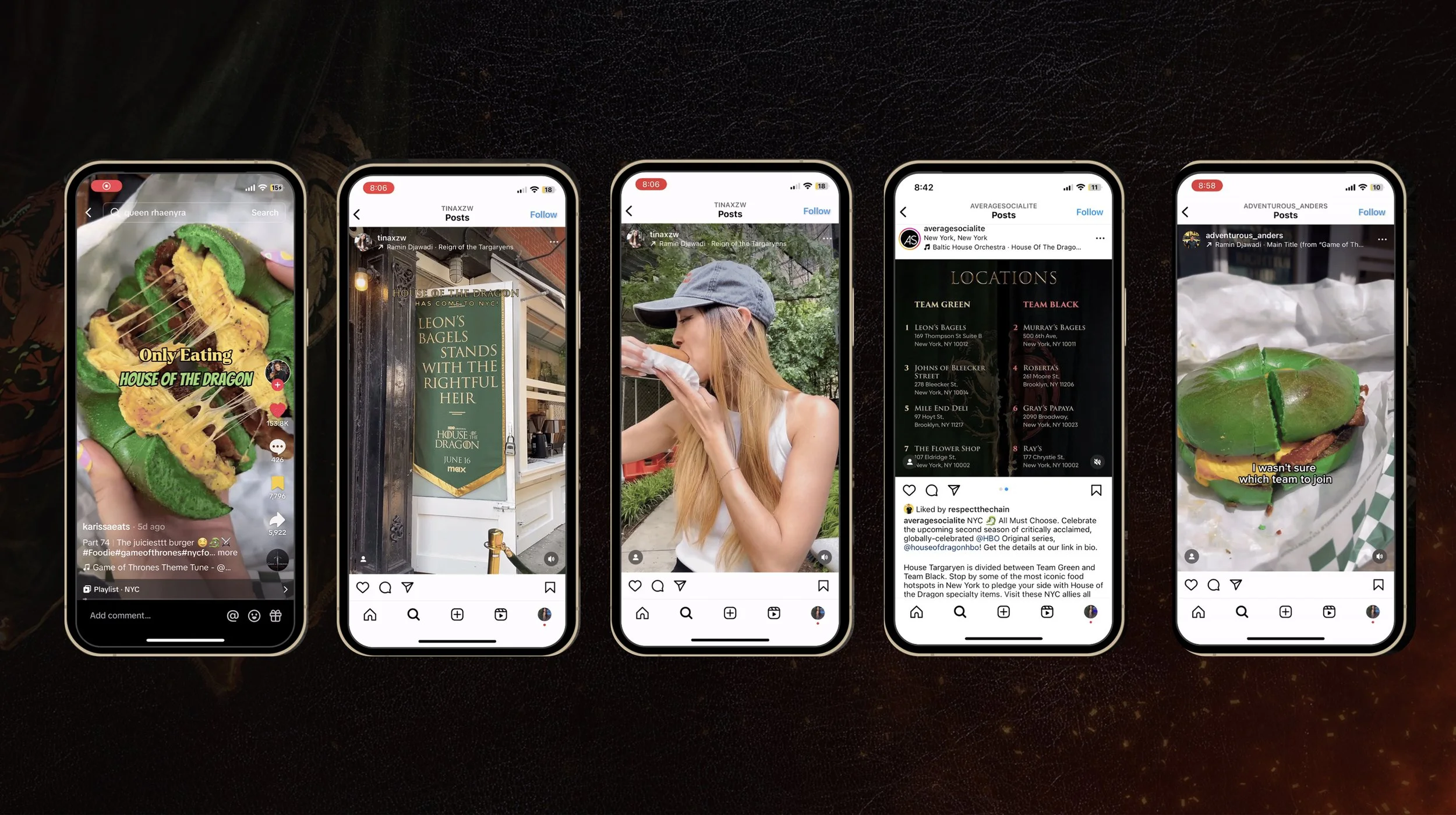 First, we reminded audiences of the show they love, reigniting their passion for the Targaryen drama. Next, we introduced and simplified Season 2’s pivotal rivalry, making the choice between #TeamBlack and #TeamGreen a cultural touchstone. Finally, we embarked on a cultural road trip, bringing House of the Dragon to the most public domains and ensuring it was the center of conversation everywhere.